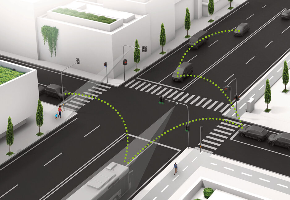 - Možnost propojení řadiče s okolní infrastrukturou V2X