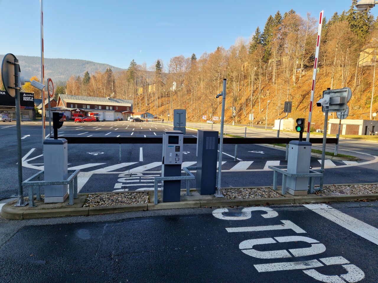 CrossPark is a barrier parking system for modern parking, which was implemented in a total of 3 parking lots. In Medvědín, Hromovce and Bedřichov, we have installed 4 entry and 4 exit terminals, 8 barriers and 6 payment terminals, where you can pay with coins, and banknotes, but also with a bank card.