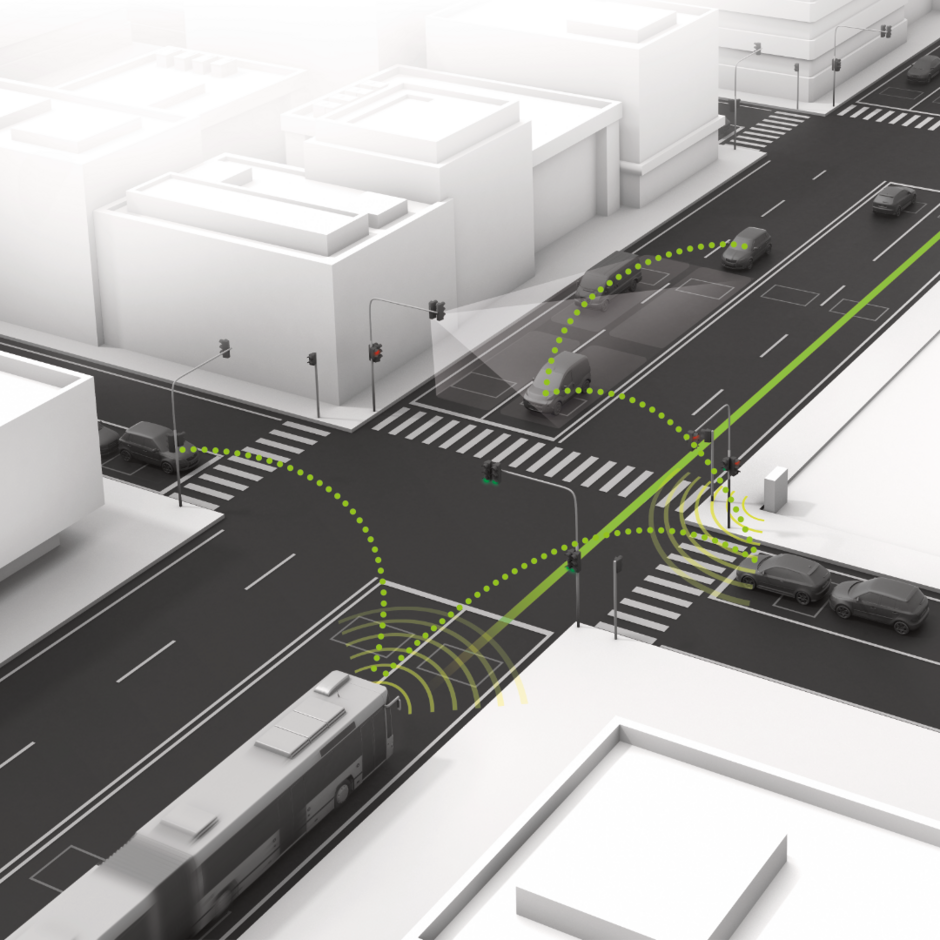 V2X system communicates with the surrounding infrastructure and it can get connected even to third-party applications. It evaluates data from intersections, cameras, other traffic light controllers and from satellites for smooth passage through the city.