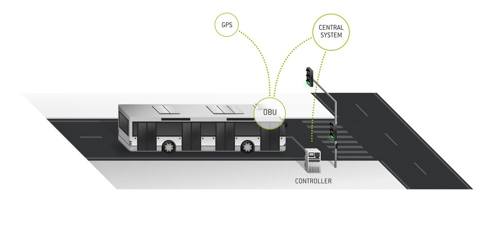 - Preference setting according to the local traffic hierarchy plan (e.g. public transport and emergency vehicles)